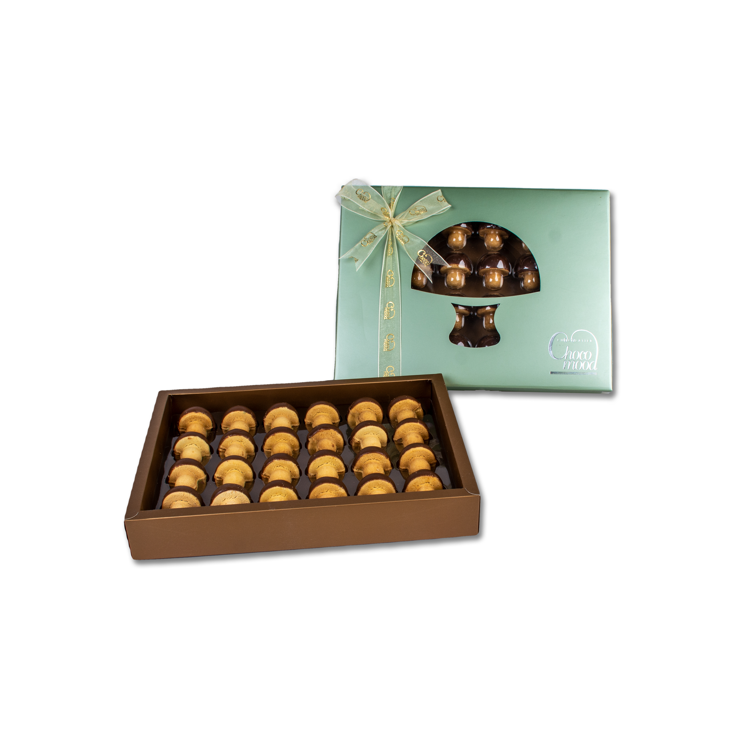 Delight and crunchy come together in a mushroom cookies. Available in many flavors: Praline, lotus and pistachios. The package contains 24 pieces