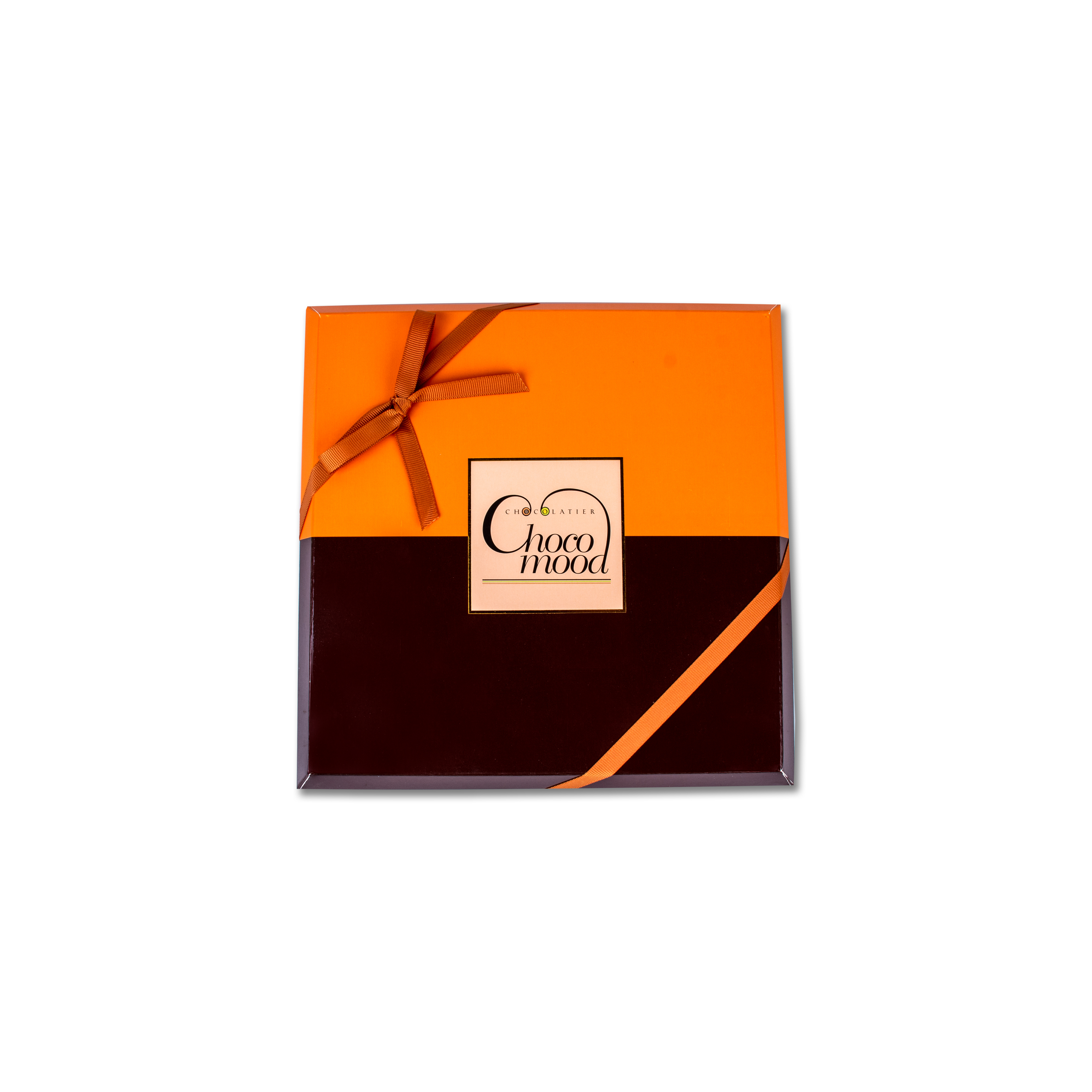 A special open chocolate box contains approximately 50 pieces. With fillings of chocolate cream and nuts with a distinctive taste
